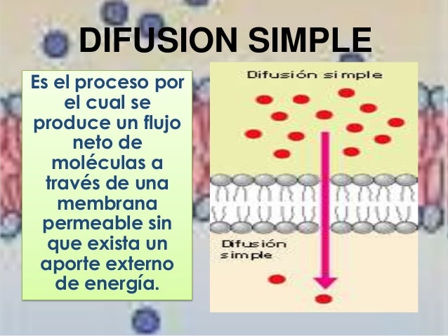 Difusión simple. Es cuando solo algunas sustancias atraviesan la membrana celular que es una doble capa lipídica, por lo tanto solo pasarán aquellas moléculas de tamaño pequeño que sean solubles en sustancias como el oxígeno, dióxido de carbono, gases de nitrógeno, ácidos grasos, esteroides y algunas vitaminas.
